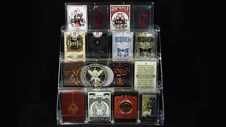 Carat XCR4 4-Tier Case Rack was created to display decks of playing cards, either by themselves or in Carat Cases, in four tiered rows to take advantage of unused vertical space.