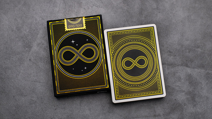 Erik TaitThis is an ultra-limited special edition of the Continuum playing cards. Featuring 100% custom artwork, the card backs are crafted from black ink and gold foil for a luxurious shine. They have a detailed geometric design with an infinity symbol in the middle - representing infinite possibilities.