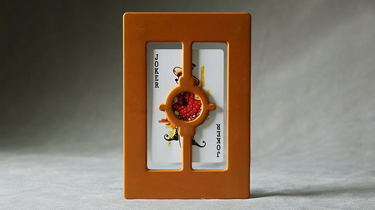 the magician shows a clear plastic piece framed in on all sides by opaque plastic. A playing card is placed on the clear plastic piece. Surprisingly, when the card is removed, the card has a hole in it and the clear plastic is unharmed.