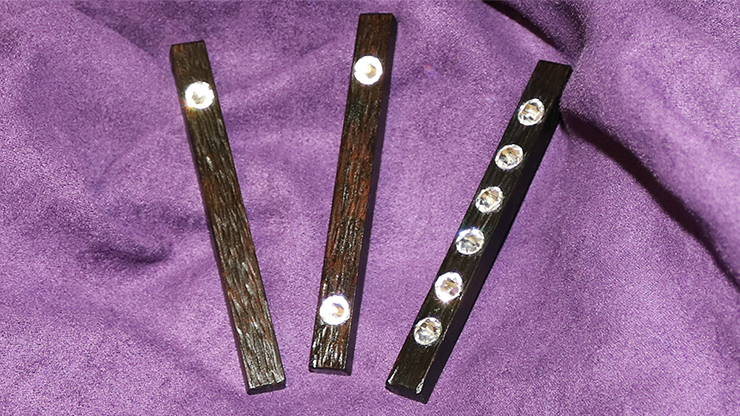 Effect: The magician produces two genuine ebony rods and shows them empty on both sides. With a flourish, a gem appears on one of the rods. The gem is then "tossed" to the other rod. Tap the rods together, and now they both have gems. Magically transfer one of the gems to the other rod, and now it has a gem on each end! Next, one of the gems travels down the rod and the rod now has two gems on one end. The effect features a color changing gem, and finally a beautiful finish: 2 gems become 6, and 6 gems become a total of 12 gems, six on each side! This routine looks like real magic... your audiences will love it!