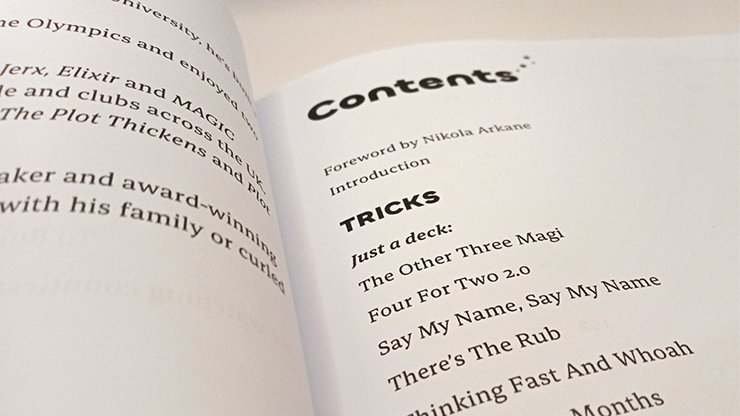 Expect fresh plots, streamlined methods and playful audience interaction. Several of the tricks are also 'scalable', so they can play in both close-up and parlor performances.