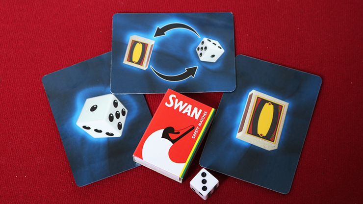The performer introduces three cards and a matchbox. Inside the box is a single die. The box and die are placed on the table and covered with the cards. The moment the cards are dropped, the die and matchbox instantly switch places, leaving your audience in awe!Once the effect is over, the matchbox and die are examinable!