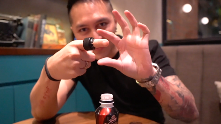 A classic of magic reimagined for today's street artists. One of the most powerful acts of force is taking an everyday object and transforming it right before your spectator's eyes. Taiwan Ben has taken the Karate Coin concept to a new level. Imagine removing the cap off of your favorite drink (or from someone else's), tossing it in the air and stabbing your finger through it! Then... giving the cap out for examination!!