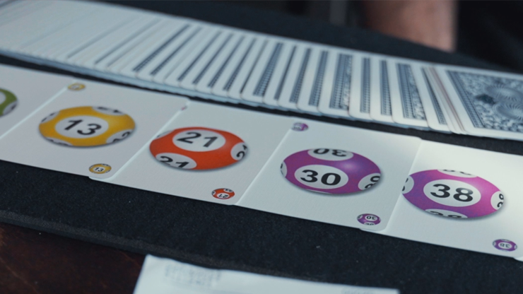 Today, Yoan offers you a specially printed deck of marked cards with lottery balls, numbered from 1 to 52. Thanks to these playing cards, you will not only be able to predict each draw, but also to force fate and influence your spectators' choices.