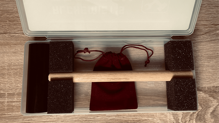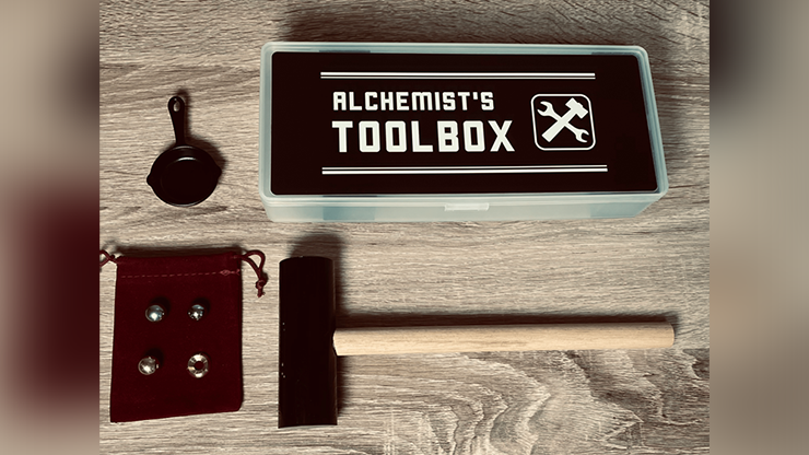 All the tools can be stored in the plastic box. The box is labeled "ALCHEMIST'S TOOL BOX" and can be used as part of the performance.