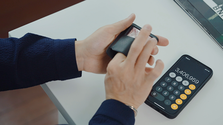 Imagine performing an open prediction effect with your phone, which you already carry with you. This device lets you switch playing cards, bills, coins, business cards, etc.