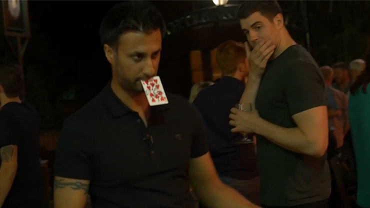 Imagine... A chosen playing card is lost in the deck. You then proceed to have your wrists tightly locked together using the Moroccan Wrist Restraint. Following that, you then ask the spectators to begin counting down from 5. You don't just escape within that time, but you find their chosen card, which is revealed in your mouth after turning 360 degrees!