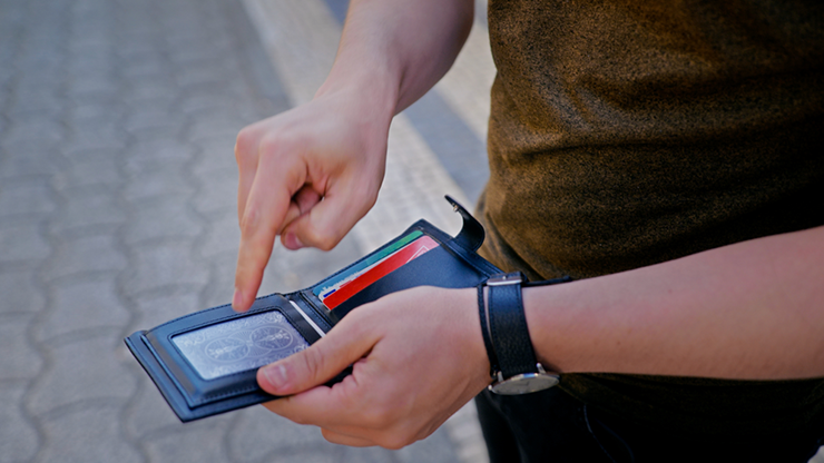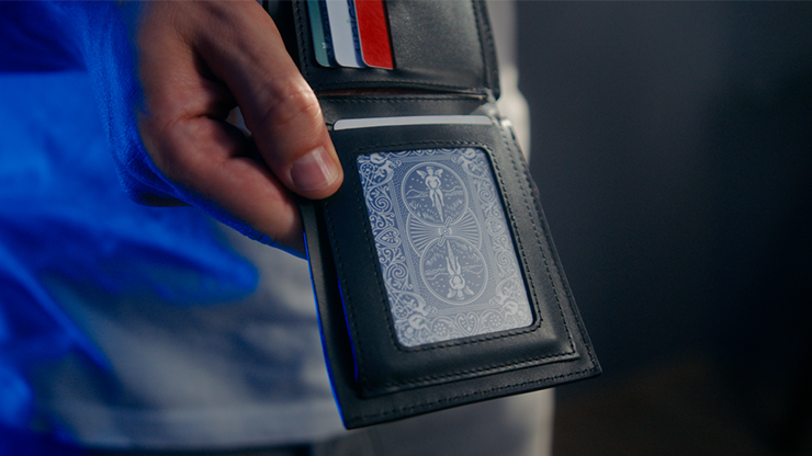 The Effect: Your spectator freely names any value, from Ace to King. You remove a set of cards from your wallet, which holds not only the cards but also your cash and bank cards, enhancing its authentic look. Then, the spectator is asked to select a color, and then a suit. As the cards are spread in your hands, the spectator's chosen card is the only one face-up among the others. But the astonishment doesn't end there: it's the only card with a red back, while the others have blue backs, and they are blank on the face: these cards were never real!