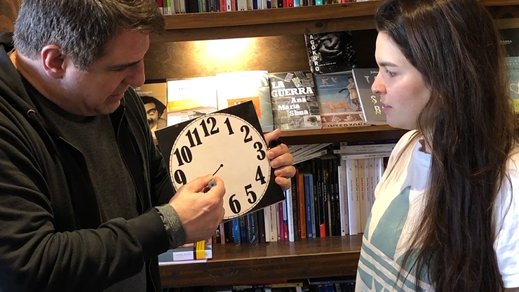 You have an image of a handless clock and ask someone form the audience to randomly choose an hour and minutes. You draw the hands with a marker on the clock, and immediately reveal that your prediction matches their selections!