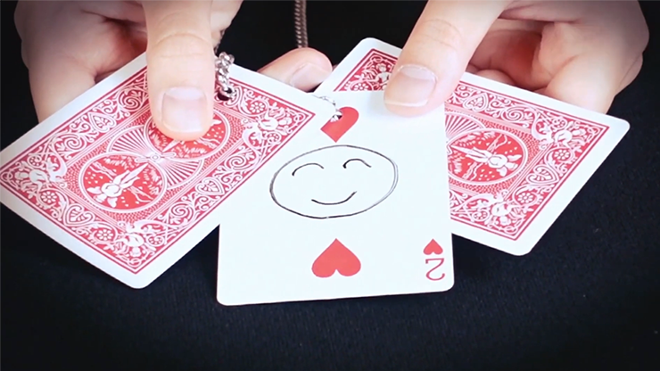 A stylish new card effect that ends with the spectator getting a souvenir that will cement your performance in their memory for a lifetime. A card is selected (possibly signed), and then becomes inexplicably fixed to a chain sandwiched between two Jokers.This never-before seen sandwich effect canbe performed fairly in front of even your most suspicious spectators. The