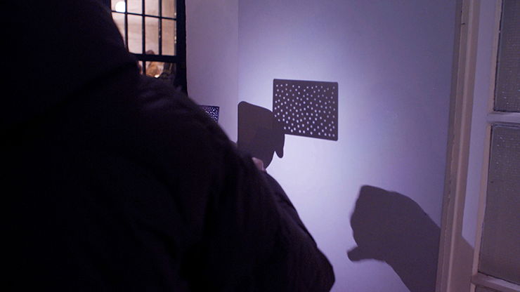 Once your spectator has chosen a card, you explain how the answer to discovering their card lies in the cosmos. With a smartphone in hand, you shine a light through a specially-crafted card with a bunch of holes punched in it, casting a random display of stars onto the wall. This haphazard array of stars then visually realigns into a unique revelation of their selected card.