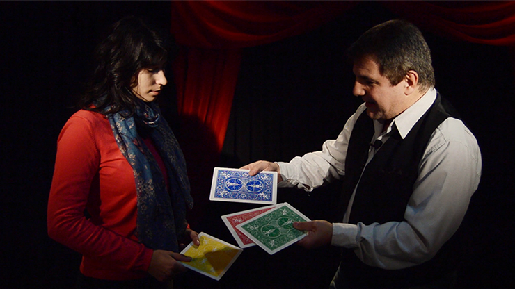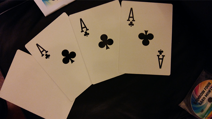 The magician shows three blank cards and one Ace. He makes the monte and the spectator always loses. At the end of the show the magician shows that there were three Aces and only one white card.
