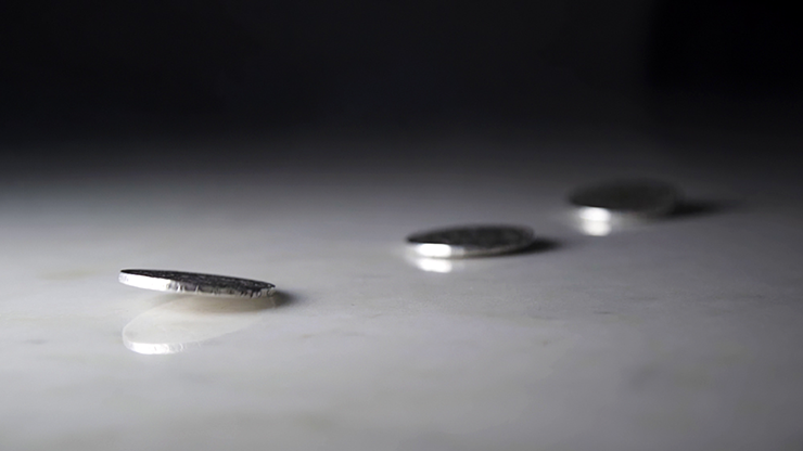 Wild Coin: An incredibly visual performance piece in which three silver coins appear, disappear and travel between your hands in an aesthetically striking sequence. One at a time, the silver coins then transform into copper coins. You hand these to a spectator for a moment, and... What has just happened appears to have been an illusion, as the coins become silver again... Perhaps you dreamed it all...