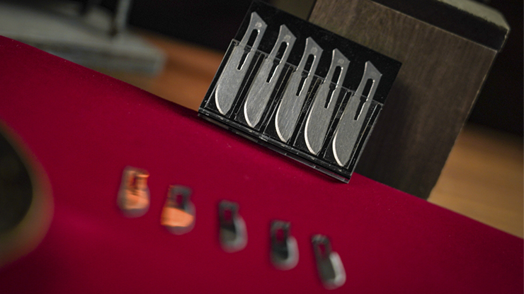 - 10 hand-polished gimmicked blades, seemingly sharp but harmless.